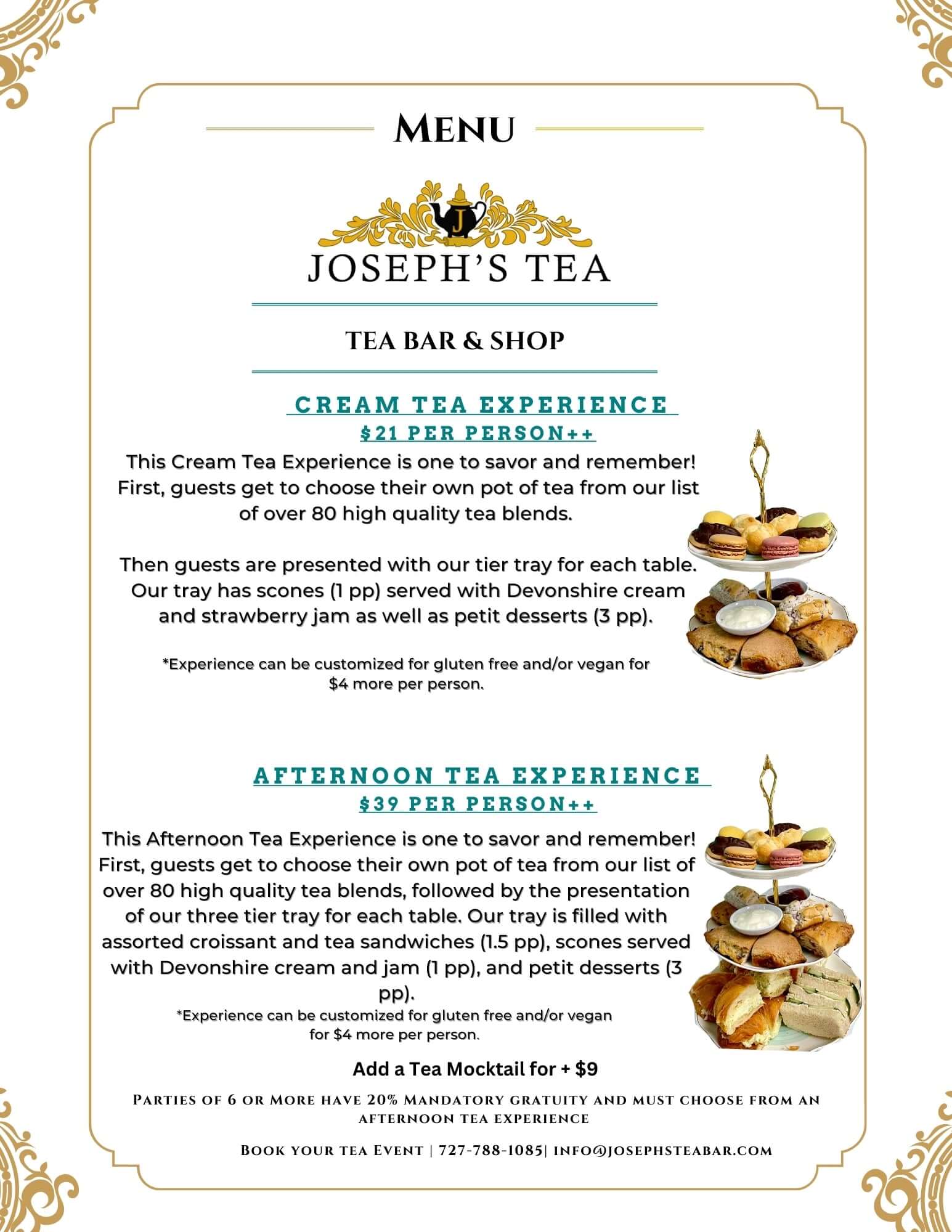**Reservations required FOR ALL TEA EXPERIENCES**